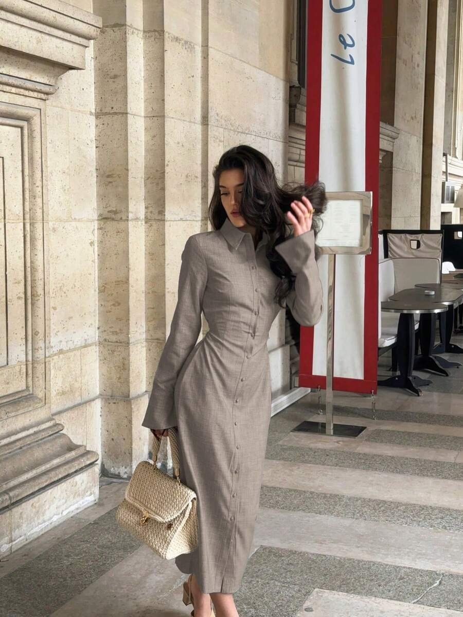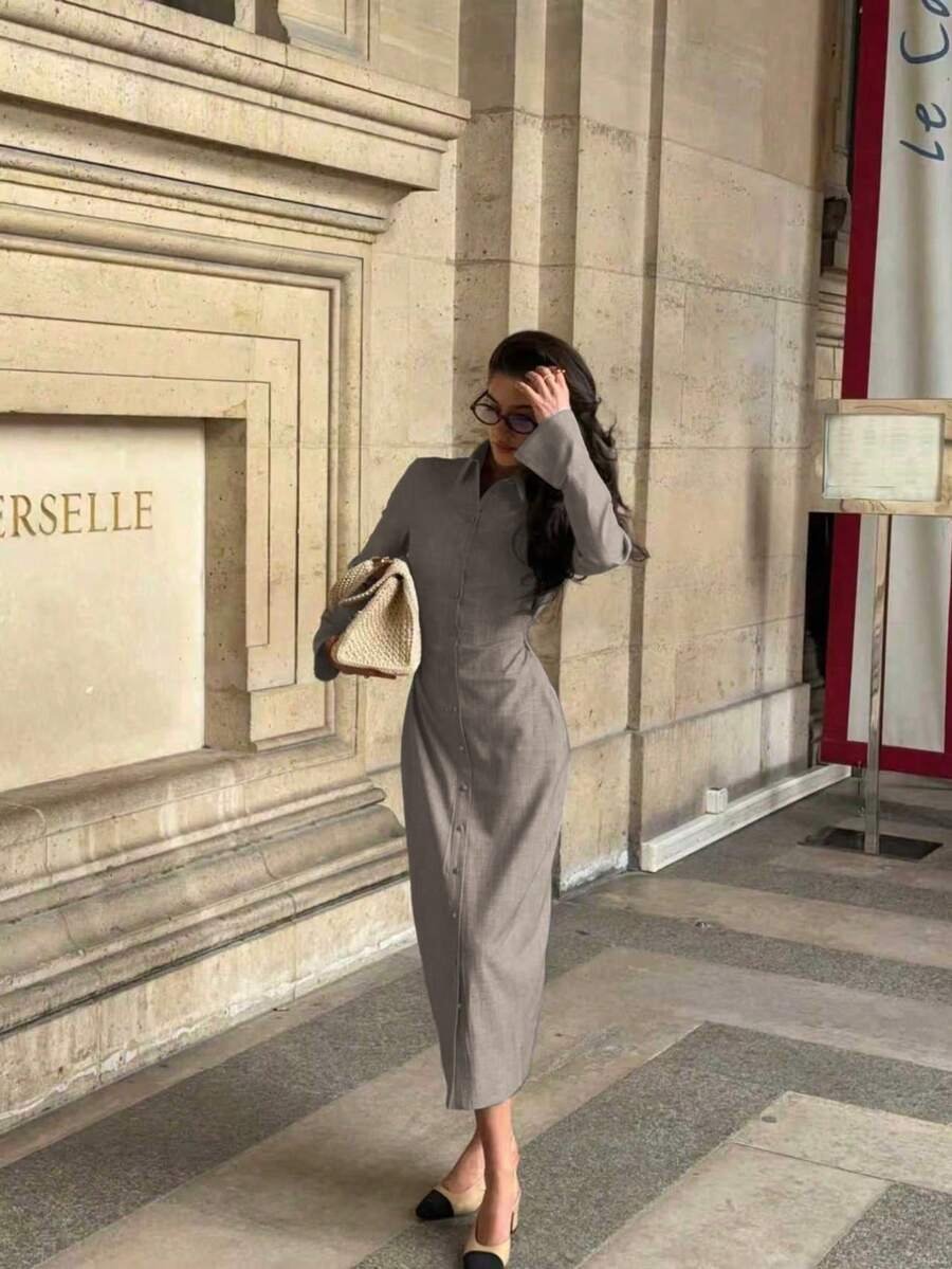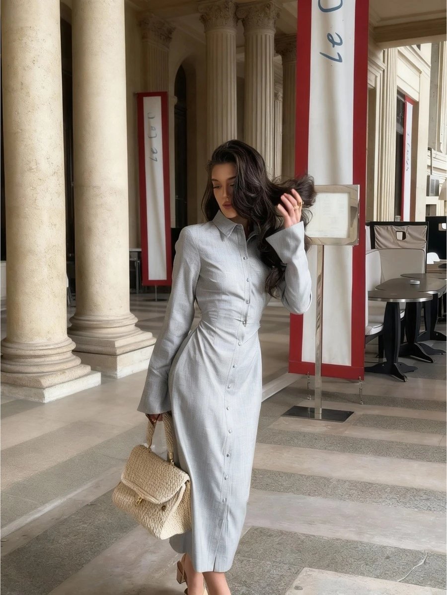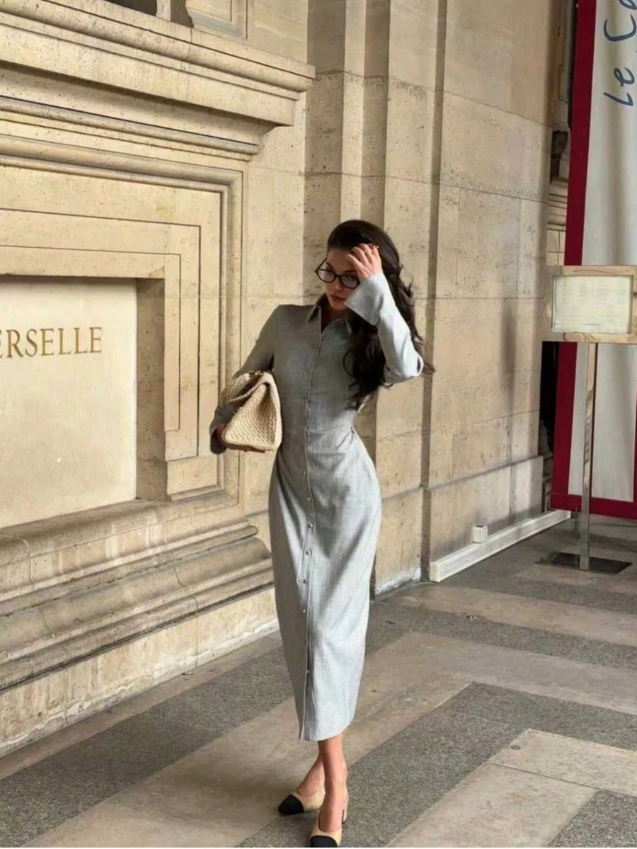 3 reviews for فستان قميص طويل أنيق للنساء بنقشة زهرية رمادية مع تفاصيل مميزة – طيات جانبية، أكمام مكشكشة، أزرار أمامية، خصر مناسب، ياقة منحرفة