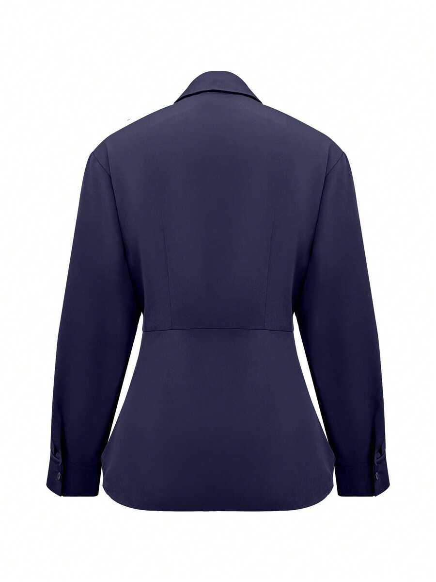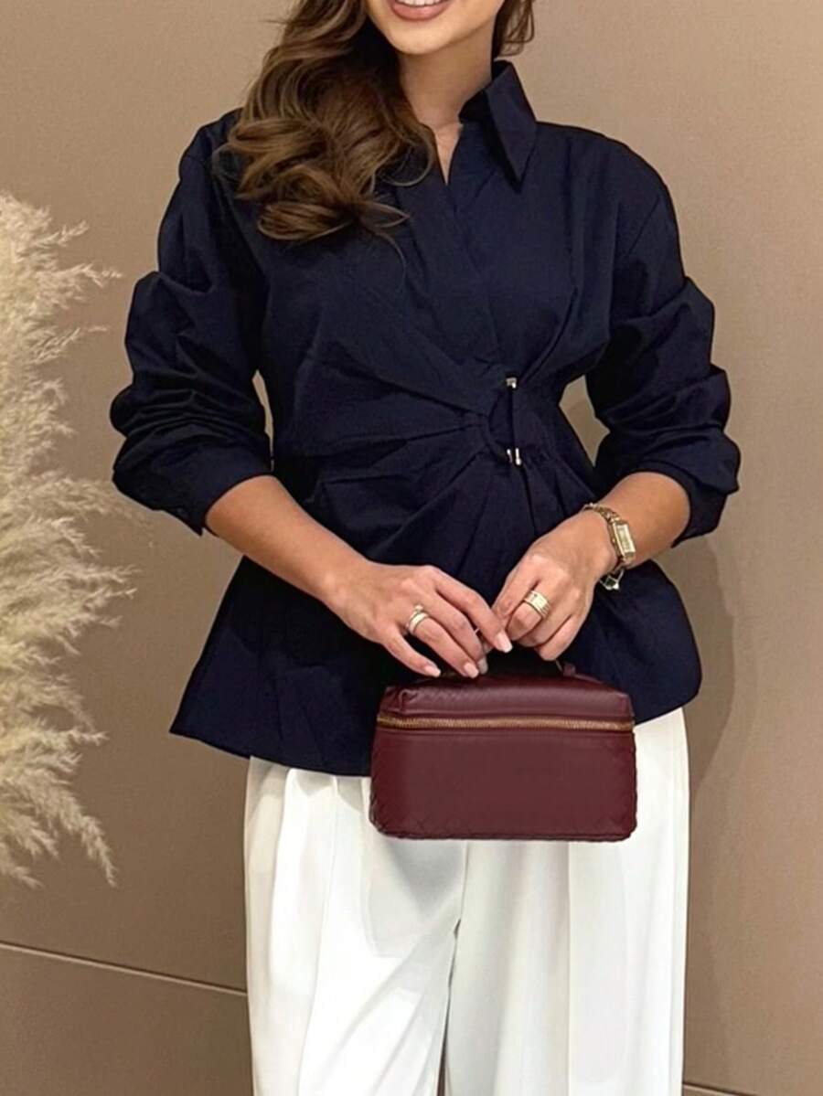 قميص نسائي أنيق بتصميم الخصر طويل الأكمام، قماش منسوج بلون واحد، مناسب للمكتب والارتداء اليومي، للربيع/الصيف