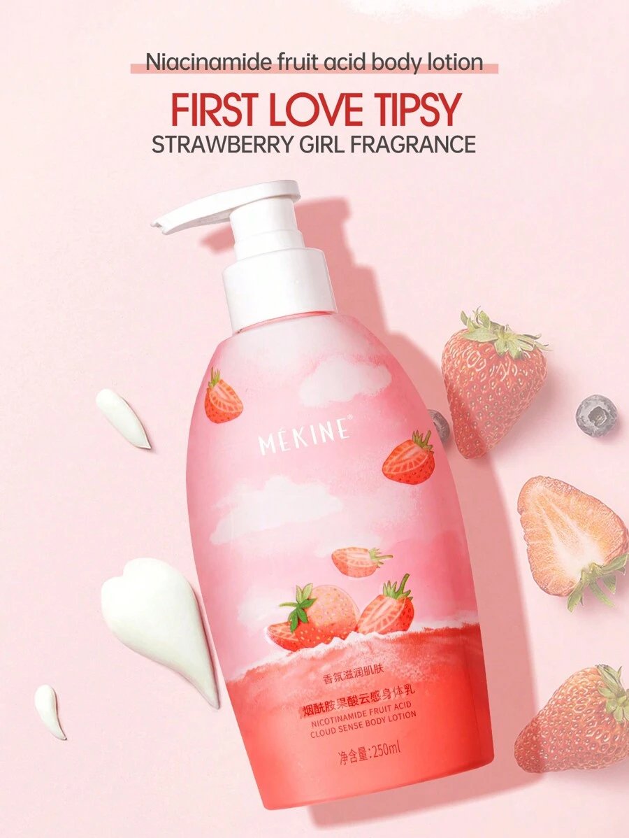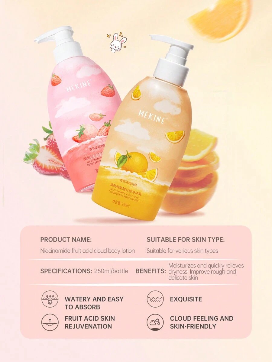 لوشن جسم حمض فواكه الحليب الفراولة، ميلك حليب الجسم الحامض المبيض للنياسيناميد برائحة الحمضيات العطرية المنعشة، مرطب للخريف والشتاء لتقليل جفاف الجلد، يحتوي على فيتامين سي الفواكه لريحة عطرية مميزة