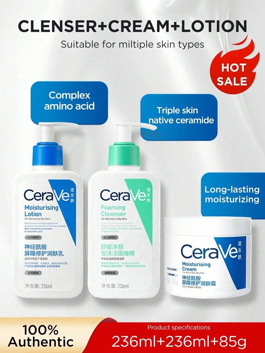 جل منظف 236 مل + لوشن مرطب 236 مل, كريم للوجه 85 جرام + جل منظف 236 مل, منظف 236 مل + لوشن 236 مل + كريم للوجه 85 جم