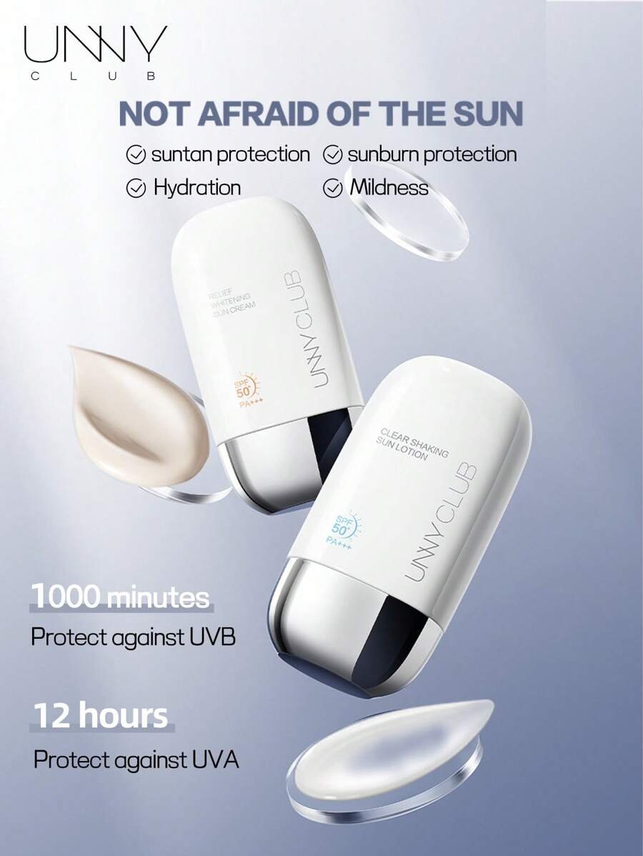 unny club كريم واقي من الشمس شفاف 50مل، بحماية SPF 50، ملمس مائي، غير لزج غير دهني، حماية شمس لمدة 12 ساعة، تطبيق في 3 ثوان، مقاوم لأشعة UVA+UVB، ملمس خفيف، مضبط للزيوت، للبشرة الحساسة بعد عمليات الليزر، مع مكونات العناية بالبشرة