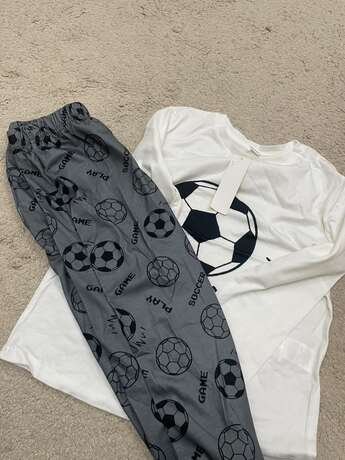 3 reviews for SHEIN مجموعة بيجاما لأطفال/مراهقين من الأولاد تتكون من 2 قطعة، ملابس علوية بياقة مستديرة وأكمام طويلة مع طباعة رياضية كاجوال وبنطلون